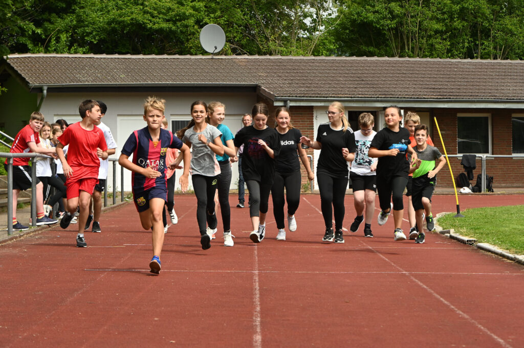 1075 Sportplatz-Runden legten die Schülerinnen und Schüler des jetzigen sechsten Jahrgangs beim diesjährigen Sponsorenlauf zurück, um notleidenden Kindern in Burkina Faso zu helfen.