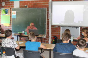 Der Sponsorenlauf wurde zum elften Mal in Folge veranstaltet und bildete den krönenden Abschluss des Unterrichtsprojekts ,,Kinder in der Welt“, der in enger Zusammenarbeit mit dem Hüllhorster Verein „Starke Kinder e.V.“ durchgeführt wurde. Zuvor hatten sich die Schülerinnen und Schüler im Gesellschaftslehre-Unterricht über das Land und die Arbeit des Vereins informiert. Anschließend besuchten Herr Frank Weske und Herr Bernd Kahler als Vertreter des Vereins alle Klassen des sechsten Jahrgangs, um über das Leben der Menschen in dem westafrikanischen Land und die konkreten Hilfsprojekte vor Ort zu berichten und den Schülerinnen und Schülern einen möglichst hautnahen Eindruck zu vermitteln. In diesem Rahmen wurde auch Antoine Soubeiga, der Ansprechpartner des Vereins vor Ort, per Videotelefonie dazugeschaltet. Er beantwortete die Fragen der neugierigen SchülerInnen.