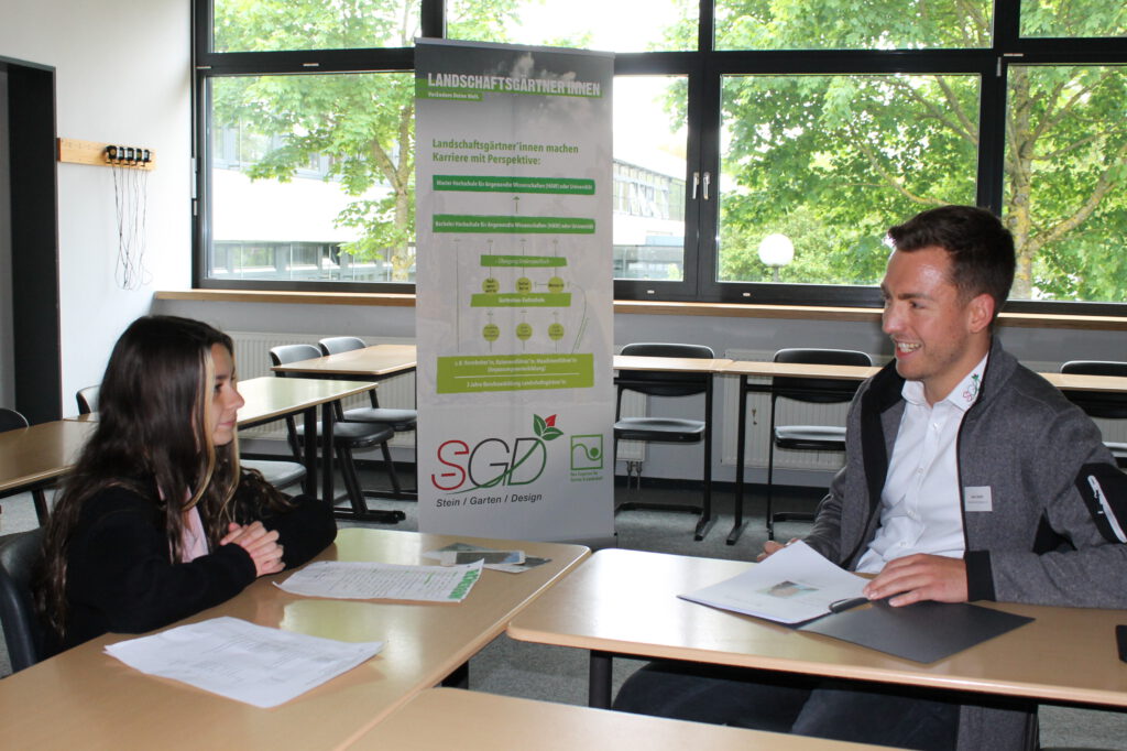 Deshalb lautete das Motto am heutigen Mittwoch für die rund 180 Schülerinnen und Schüler des neunten Jahrgangs: Informieren, Trainieren, Präsentieren. Diese absolvierten nämlich im Rahmen des alljährlich stattfindenden Bewerbungstrimmpfades einen systematischen Parcours, der sie auf zukünftige Bewerbungssituationen vorbereitet. Beraten wurden die Schülerinnen und Schüler dabei von Experten und Vertretern aus 24 regionalen Firmen verschiedenster Berufssparten und Institutionen, die in zuvor erprobten Bewerbungssituationen ihre ,Bewerberinnen und Bewerber‘ auf den Prüfstand stellten.