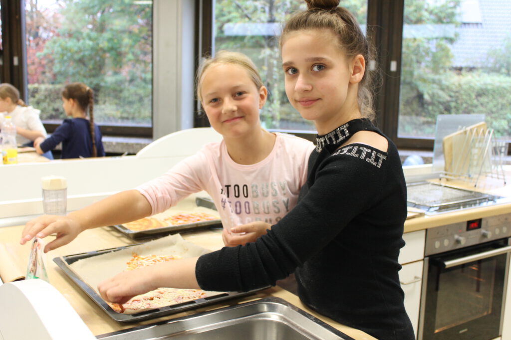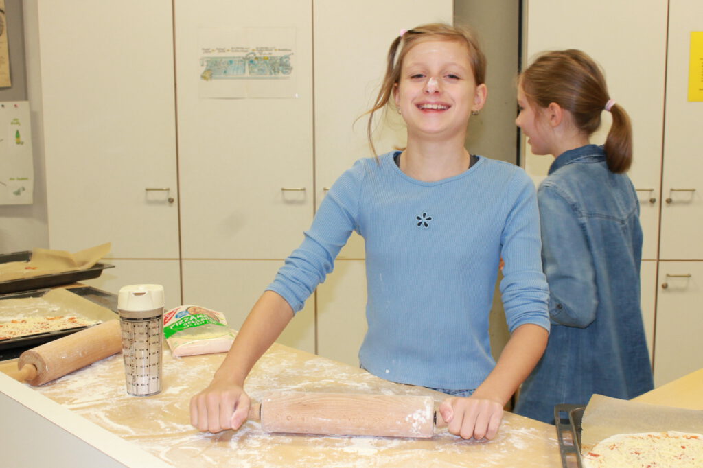Und weil sportliche Betätigung hungrig macht, drehte sich in der Schulküche alles rund ums Essen. In der Hauswirtschaftsgruppe wurde gerührt, gerollt, geknetet und geschnitten. Heraus kam eine köstliche Mini-Pizza, die der ein oder andere in Zukunft sicherlich auch zu Hause servieren wird.