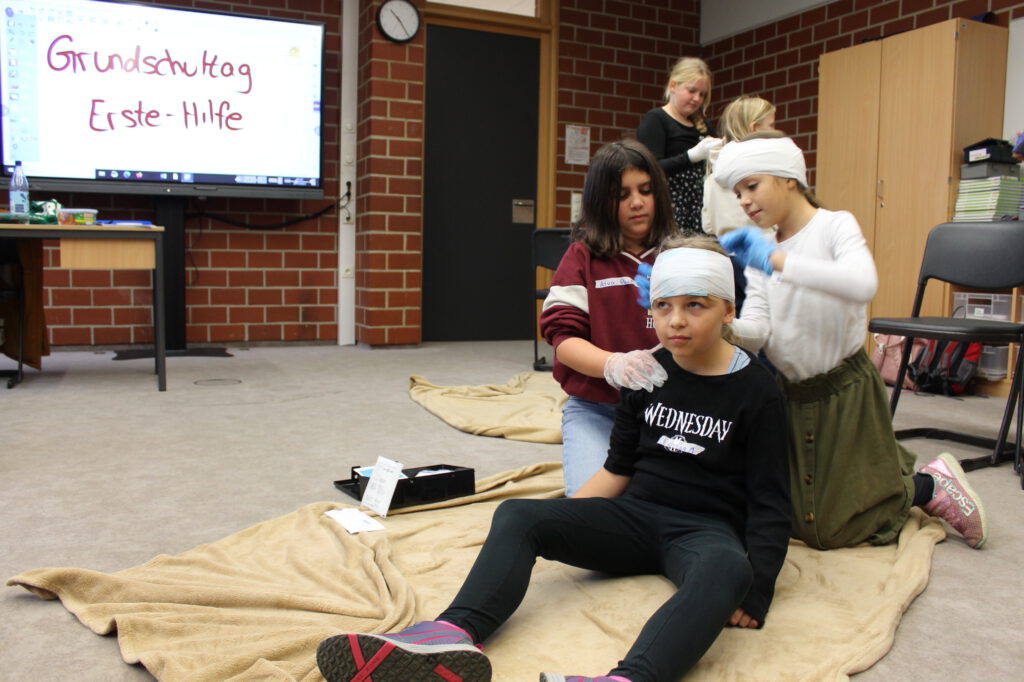 Die Projektgruppe ,,Wir werden gemeinsam zu Lebensrettern!“ nahm das Motto ganz genau und beschäftigte sich mit grundlegenden Maßnahmen der Ersten Hilfe, um für zukünftige Notfälle bestens gewappnet zu sein.