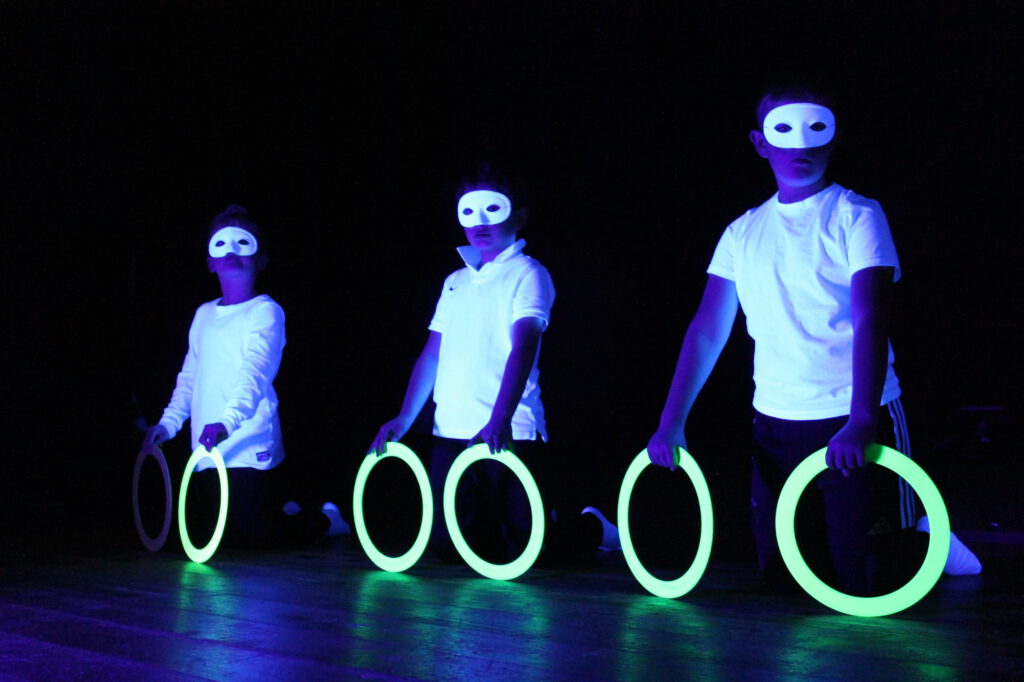 In seiner folgenden Begrüßungsrede stellte Schulleiter Jörg Rümpel fest, dass sowohl die Schule als auch die Besucher dieselben Ziele verfolgen. Beide Seiten seien auf der Suche, die Grundschulkinder nach einer neuen Schule und die Schule nach neuen Bäumen, denn traditionell erhalten die Klassen an der Gesamtschule Baumnamen. „Vielleicht können wir unsere gemeinsame Suche heute und hier erfolgreich zusammenführen“, meinte Herr Rümpel schließlich. Nach den folgenden Informationen zum Ablauf des Tages durch Abteilungsleiter Frank Vollus sorgte schließlich auch die Zirkus-AG mit einer Mischung aus tollkühner Akrobatik und abwechslungsreicher Neonlicht-Jonglage für manches Staunen bei den Gästen im Saal.