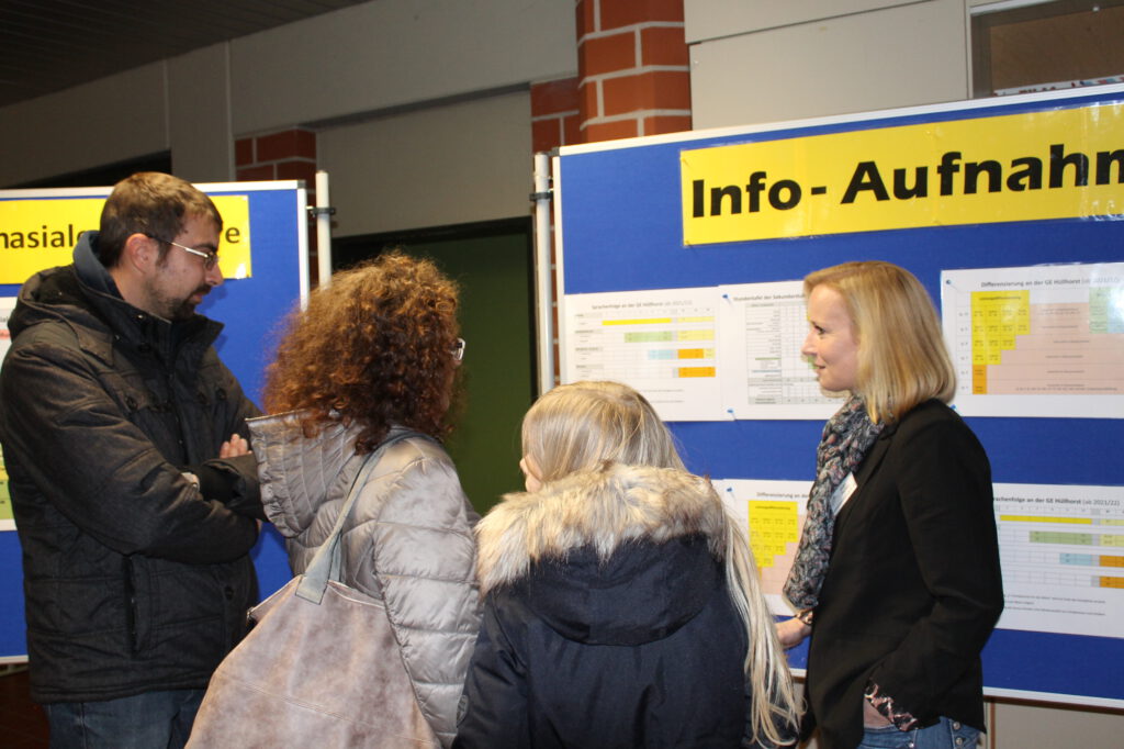 Einen allgemeinen Überblick verschafften kommentierte Führungen, die von den Schülerinnen und Schülern der Schülervertretung geleitet wurden. Zahlreiche betreute Informationsstände, die über die Besonderheiten des Schulangebots Auskunft gaben, luden in der Pausenhalle zum Verweilen und Nachfragen ein. Neben den Abteilungen für die Neuaufnahme und die Oberstufe präsentierten sich hier zum Beispiel das Ergänzungsunterrichtskonzept, die individuelle Förderung, das neue „Kraftwerk-Konzept“, die MINT-Schwerpunktsetzung, Auslandskontakte und Fremdsprachen, die Schulsozialarbeit, die Berufsorientierung, der weit gefächerte AG-Bereich sowie viele andere Projektgruppen. Auch die Ausstattung der naturwissenschaftlich-technischen Räumlichkeiten, aber auch die Informatikräume, die Fachräume der Fächer Kunst und Musik sowie die Bibliothek konnten von den Besuchern im Laufe des Vormittags eigenständig begutachtet und erkundet werden. Wer eine kleine Verschnaufpause zwischendurch einlegen wollte, konnte in der schuleigenen Mensa bei einem Imbiss oder einem Getränk die vielfältigen Eindrücke auf sich wirken lassen.