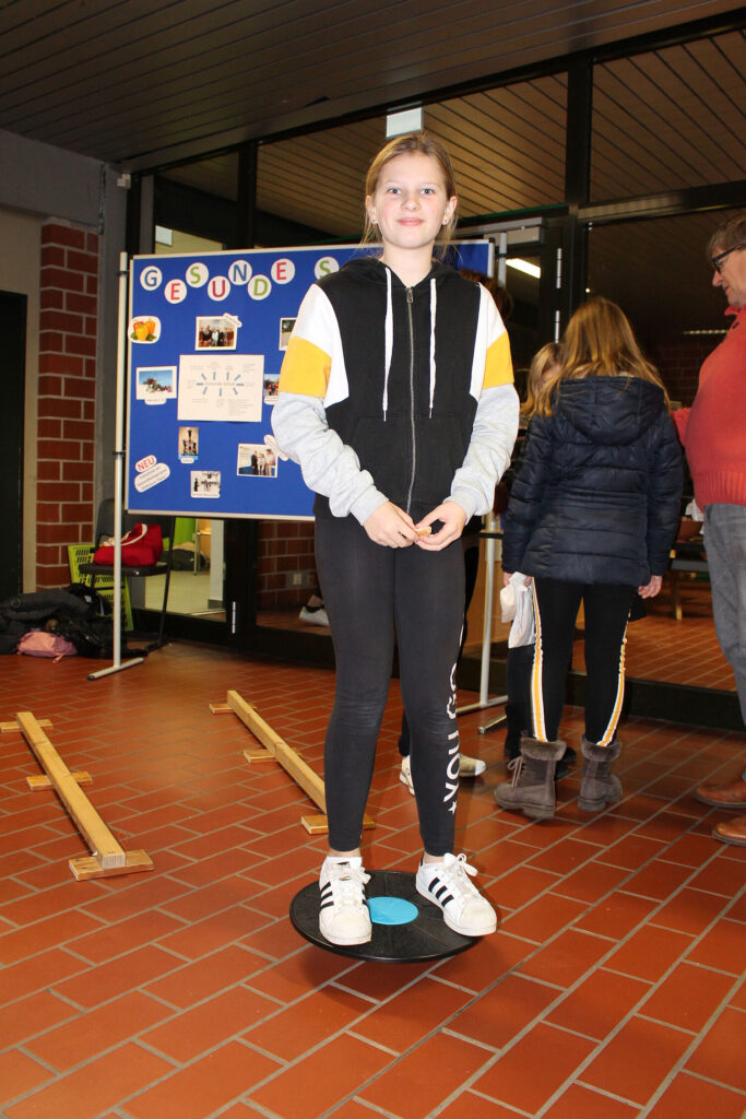 Bereits während der einleitenden Veranstaltung in der Ilex-Halle erhielten die kleinen und großen Gäste einen Einblick in das Schulkulturleben. Nach der Begrüßung durch die Schulleiterin Frau Marina Butschkat-Nienaber und weiteren Informationen zum Ablauf des Tages durch Abteilungsleiter Herrn Frank Vollus präsentierten die Musik-AG sowie die Zirkus-AG musisch und schwungvoll ihre Fähigkeiten.