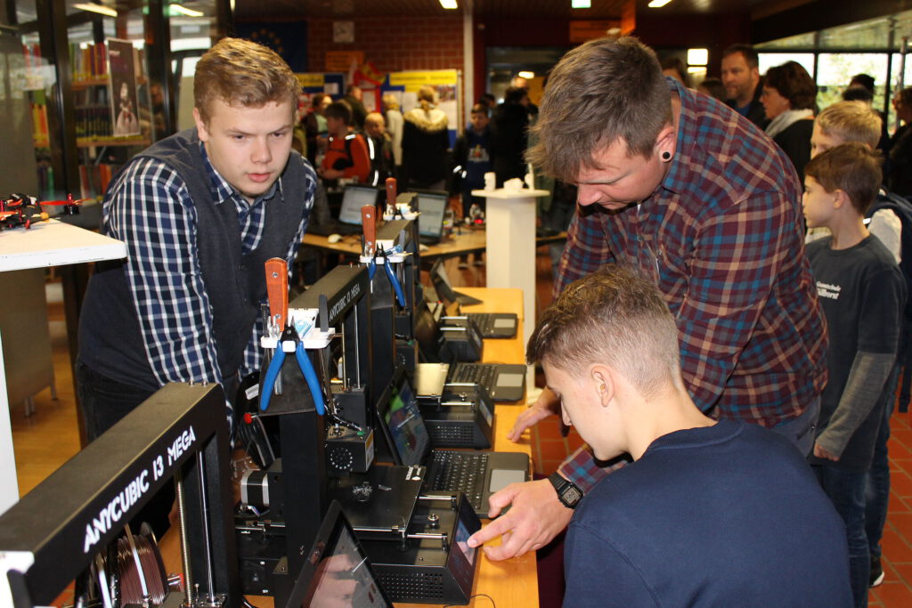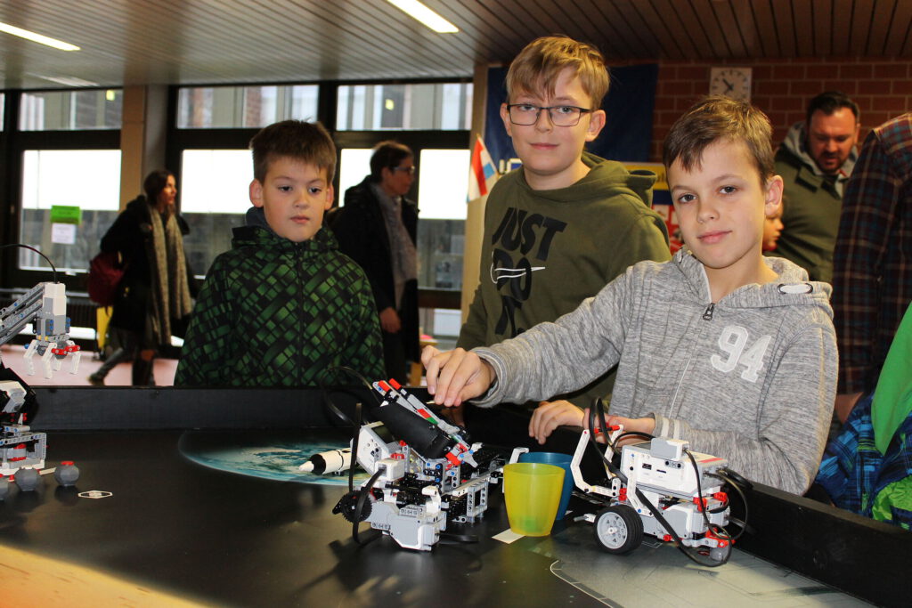 Auch der Förderverein der Schule informierte über seine Arbeit und nahm die Gelegenheit wahr, um neue Mitglieder zu werben. Besonders beliebt bei den jungen Gästen waren dieses Jahr der Stand des POINT-Kurses „Robo-Games“ mit seinen LEGO-Robotern und der Stand des Ergänzungskurses „3D-Druck“ mit seinen modernen 3D-Druckern.