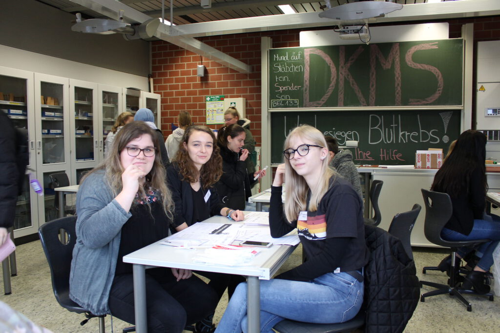 Alle 15 Minuten wird in Deutschland ein Mensch mit der niederschmetternden Diagnose Blutkrebs konfrontiert. Viele Patienten sind Kinder und Jugendliche, deren einzige Chance auf Heilung eine Stammzellspende ist. Doch jeder zehnte Patient findet keinen passenden Spender – eine Zahl, die die beiden Schülerinnen nicht einfach so hinnehmen wollten. ,,Als wir uns im Biologieunterricht mit dem Thema Blut, Blutspende und auch Stammzellspende auseinandersetzten, kam uns beiden die Idee, eine Typisierungsaktion in Kooperation mit der DKMS an unserer Schule zu organisieren, um erkrankten Menschen die Chance auf ein neues Leben zu schenken“, erklärt Jana. Schließlich könne jeder betroffen sein.