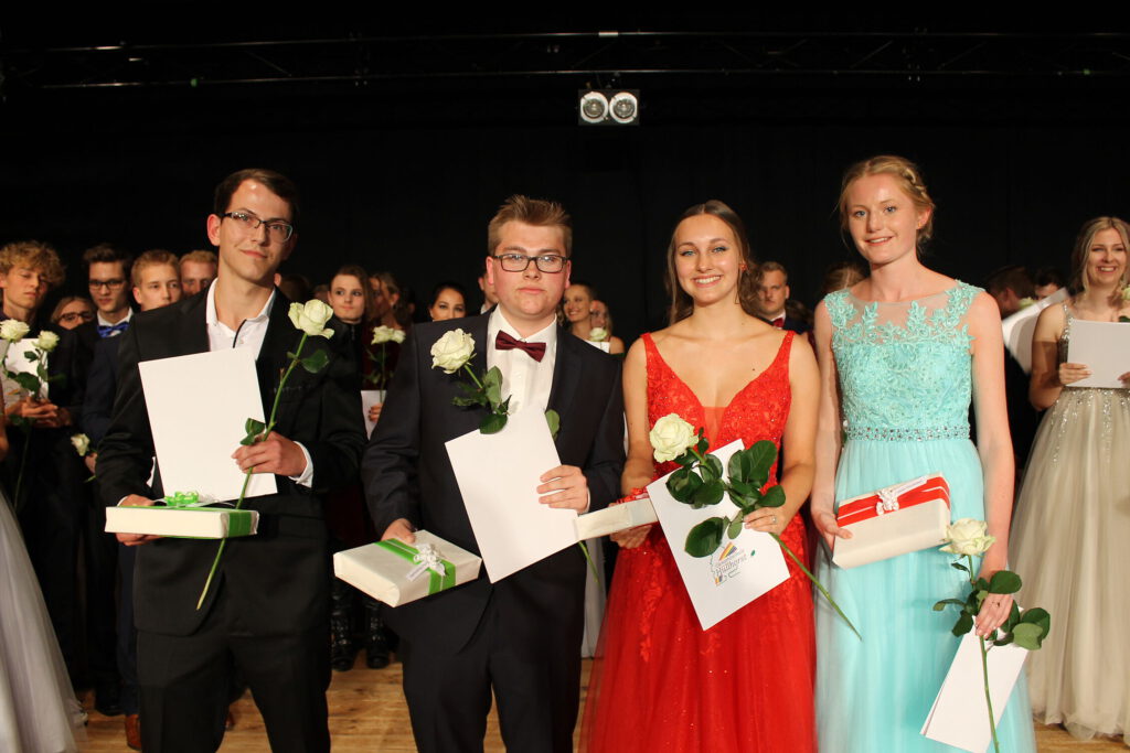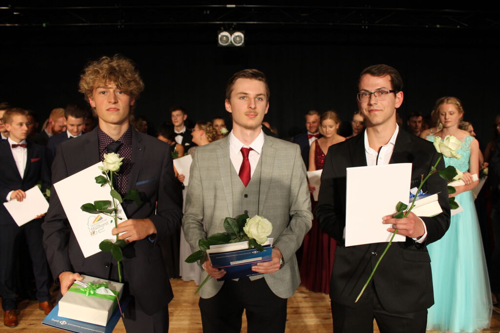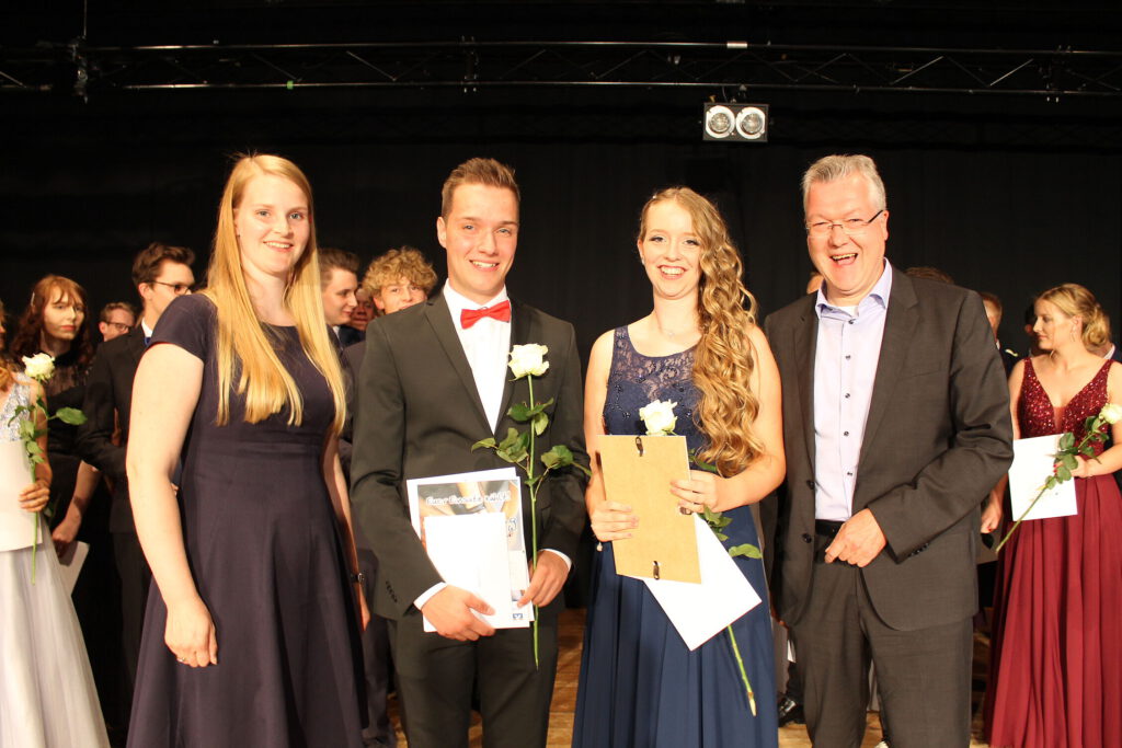 Besonders geehrt wurden die Jahrgangsbesten Max Enns, Markus Rosanowski, Melina Keiser und Wiebke Nordieker für die besten Abiturzeugnisse. Jeweils einen „Social Award“ von der Volksbank Schnathorst übergaben Frank Rohs und Kimberly Löcker an Julia Knickmeier und Schülersprecher Nils Hölscher für ihr außergewöhnliches Engagement im sozialen Bereich. Weitere Preise für besonders hervorragende Leistungen in den Fächern Mathematik und Physik erhielten Max Enns (Mathematik), Moritz Simonsmeier (Physik) und Melvin Wilde (Physik).