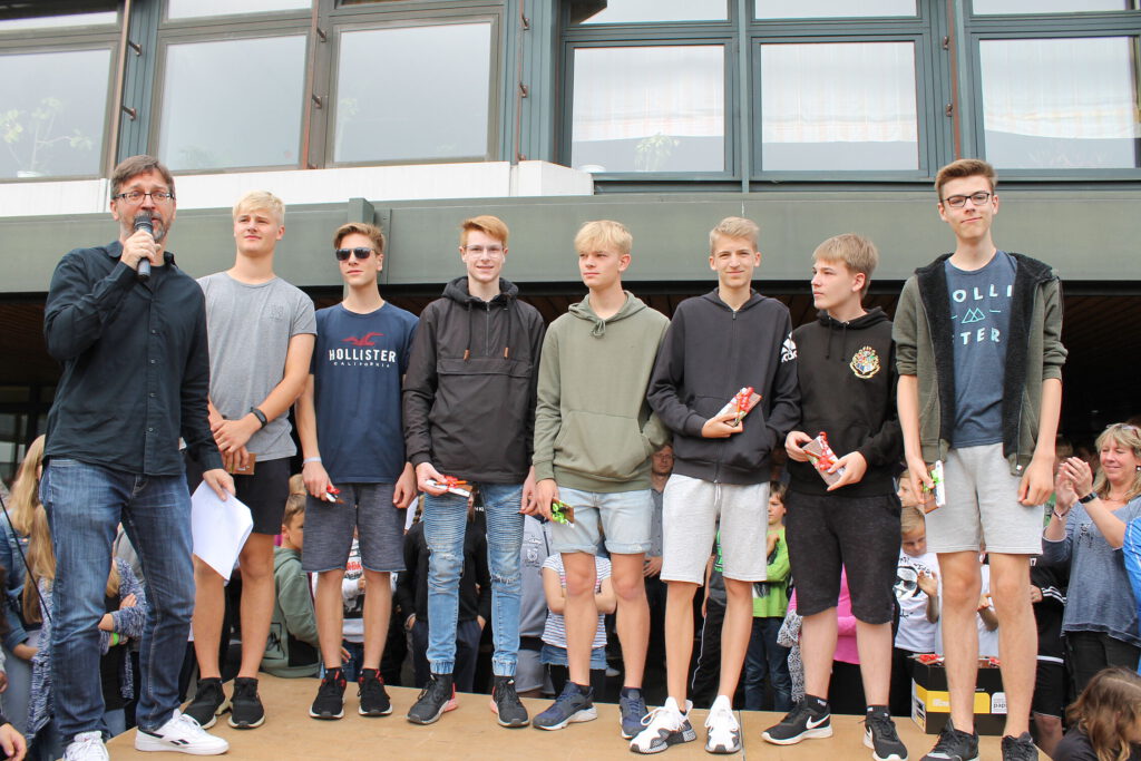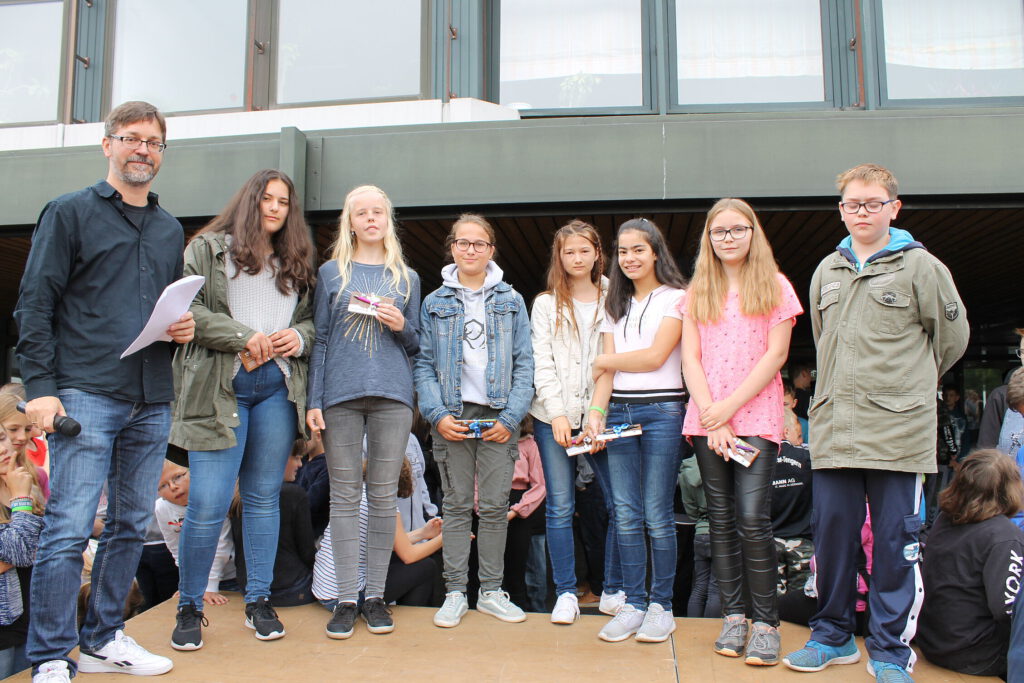 …ebenso die Schülerinnen und Schüler der Klasse 5c, die während der Projektwoche im Durchschnitt 59km mit dem Fahrrad zurücklegten und damit als Sieger der Fahrrad-Challenge hervorgingen, sowie die Schülerinnen und Schüler der Klassen 6d (2. Platz), 6e (3. Platz) und 8d (3. Platz) [Bild 5];