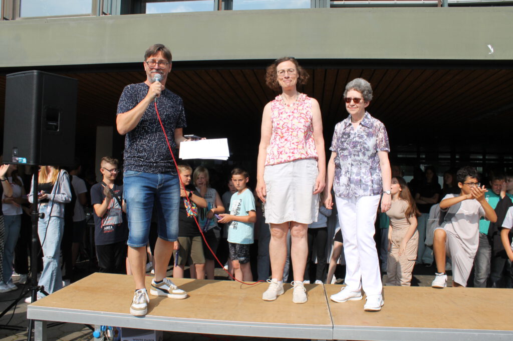Für ihren langjährigen Dienst an der Schule wurden ebenso die LehrerInnen Beate Bagehorn, Jürgen Kaschube, Claudia Krieger (auf dem Foto rechts), Angela Lüling (auf dem Foto links), Klaudia Matthausen und Renate Teepe geehrt, die heute in den wohlverdienten Ruhestand verabschiedet wurden. Außerdem dankt die Gesamtschule Hüllhorst Markus Holtkamp und Franziska Rendler, die nach den Ferien an eine andere Schule wechseln, für ihr besonderes Engagement.