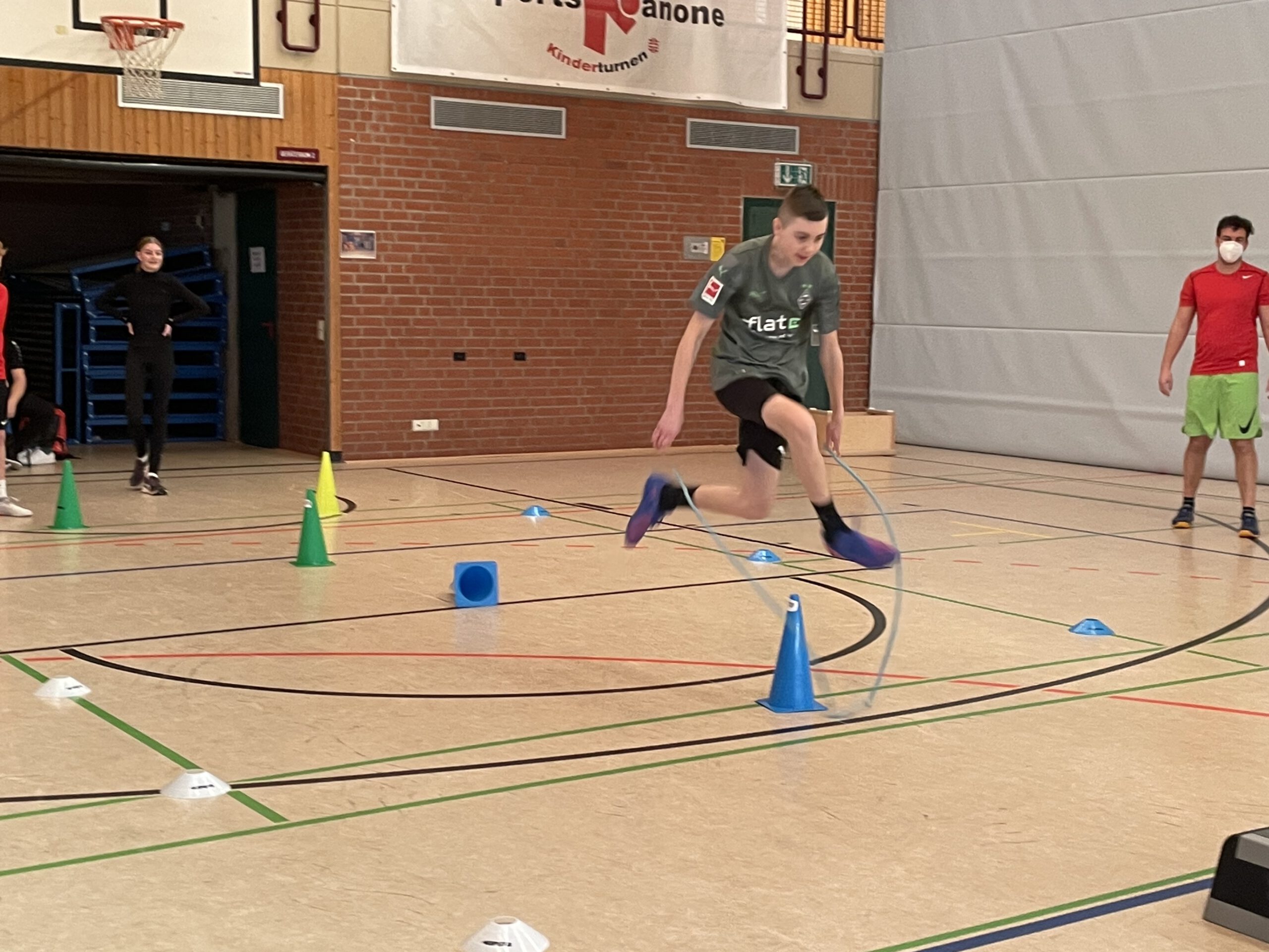 Zum mittlerweile siebten Mal wurde dieses Jahr die Sporthelferausbildung an der Gesamtschule Hüllhorst durchgeführt. In der Zeit zwischen dem 03.02. und dem 10.02.2023 haben Frau Hallau, Frau Gerstberger und Herr Barkow 15 freiwillige Schülerinnen und Schüler aus den Jahrgängen acht und neun zu Sporthelfern ausgebildet. Diese Ausbildung fand an zwei Freitagen im Anschluss an den Unterricht und zwei Samstagen jeweils drei Stunden lang statt. Am 08.02. und 09.02. wurde außerdem eine Exkursion zur Landesturnschule „Schloss Oberwerries“ durchgeführt. Hier wurde intensiv in sowohl theoretischen als auch praktischen Phasen weitergearbeitet. In der Ausbildung wurden den zukünftigen Sporthelferinnen und Sporthelfern viele grundlegende Aspekte der Anleitung und Organisation von Sportgruppen wie die Turnierplanung, Aufwärmspiele sowie kleine bzw. große Spiele und Teambildung vermittelt.