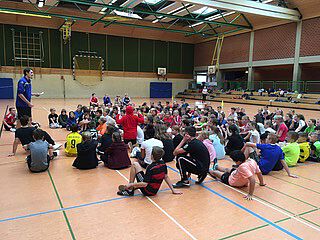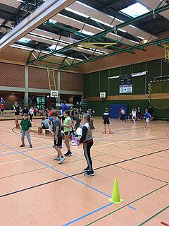 Der sechste Jahrgang unserer Schule kann nicht nur zusammen demonstrieren, sondern auch spielen. Am letzten Tag der Projektwoche kamen ca. 180 Schülerinnen und Schüler in unserer Sporthalle zusammen.