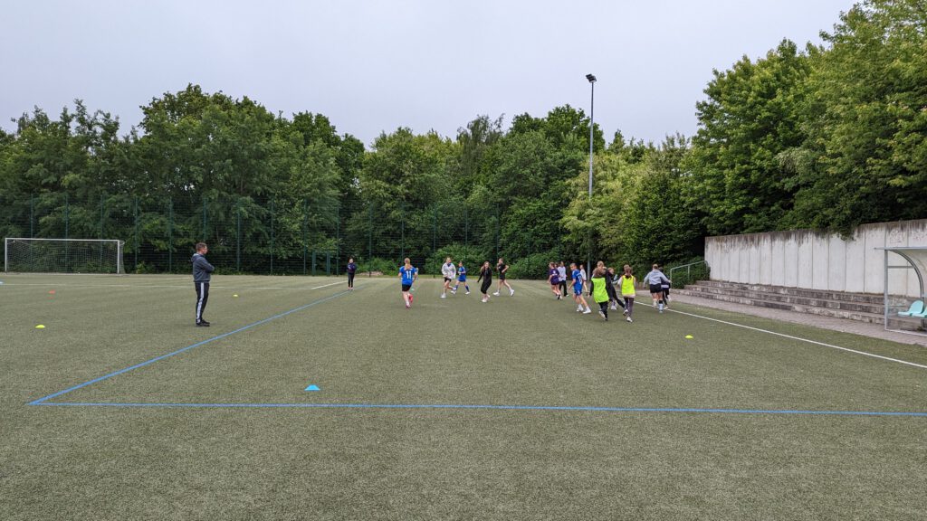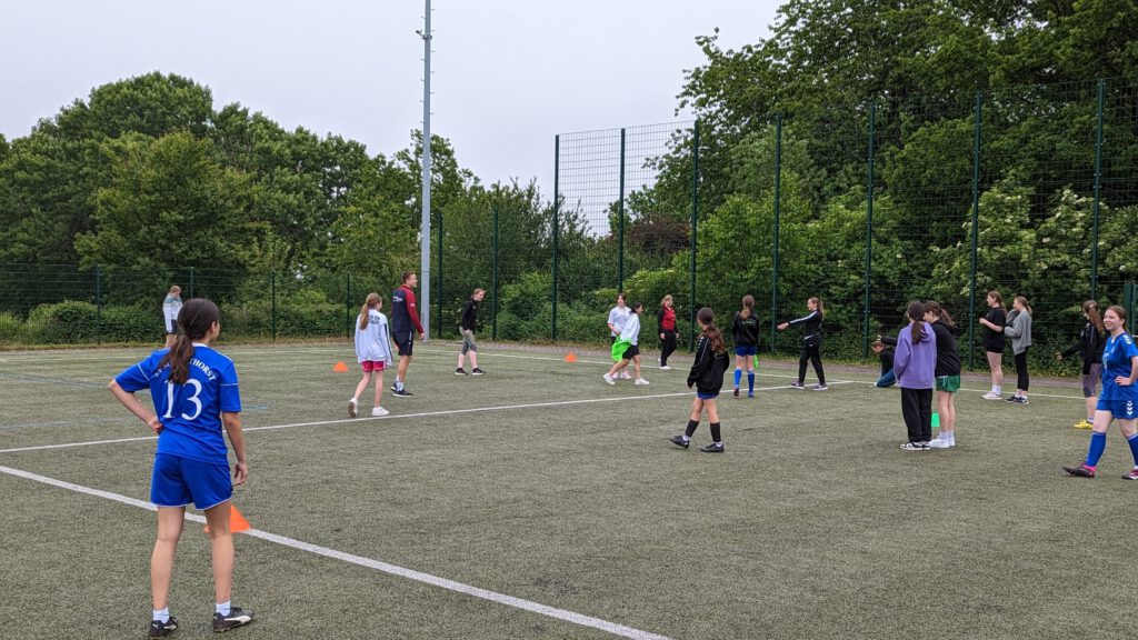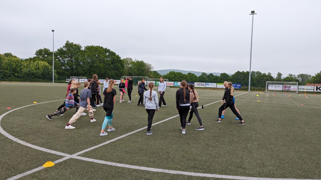 Auf dem Kunstrasenplatz der Gesamtschule Hüllhorst fand während der regulären Schulzeit zum zweiten Mal der Tag des Mädchenfußballs statt. Die Organisatorin des Events, Sportlehrerin Sonja Kadesch, hatte im Vorfeld umfangreich und detailliert geplant, um den 74 Fußballerinnen ein abwechslungsreiches Programm zu bieten. Unterstützt wurde sie von vier Vereinstrainern, die den Tag mitorganisierten und ihr Fachwissen einbrachten. Zu ihnen gehörten Katja Funk vom SV Schnathorst, die gleichzeitig Koordinatorin für Mädchenfußball im Fußballkreis Lübbecke ist, Steffen Görl vom BSC Blasheim, Jonas Granzow vom TuS Nettelstedt und Jonas Rullkötter vom SV Hüllhorst-Oberbauerschaft. Auch die drei Sporthelferinnen Mia Pühmeier aus der 9c, Katharina Nolte aus der 10a und Milena Kleine aus der 9a trugen mit ihrem Engagement dazu bei, dass der Tag zu einem unvergesslichen Erlebnis für alle wurde.