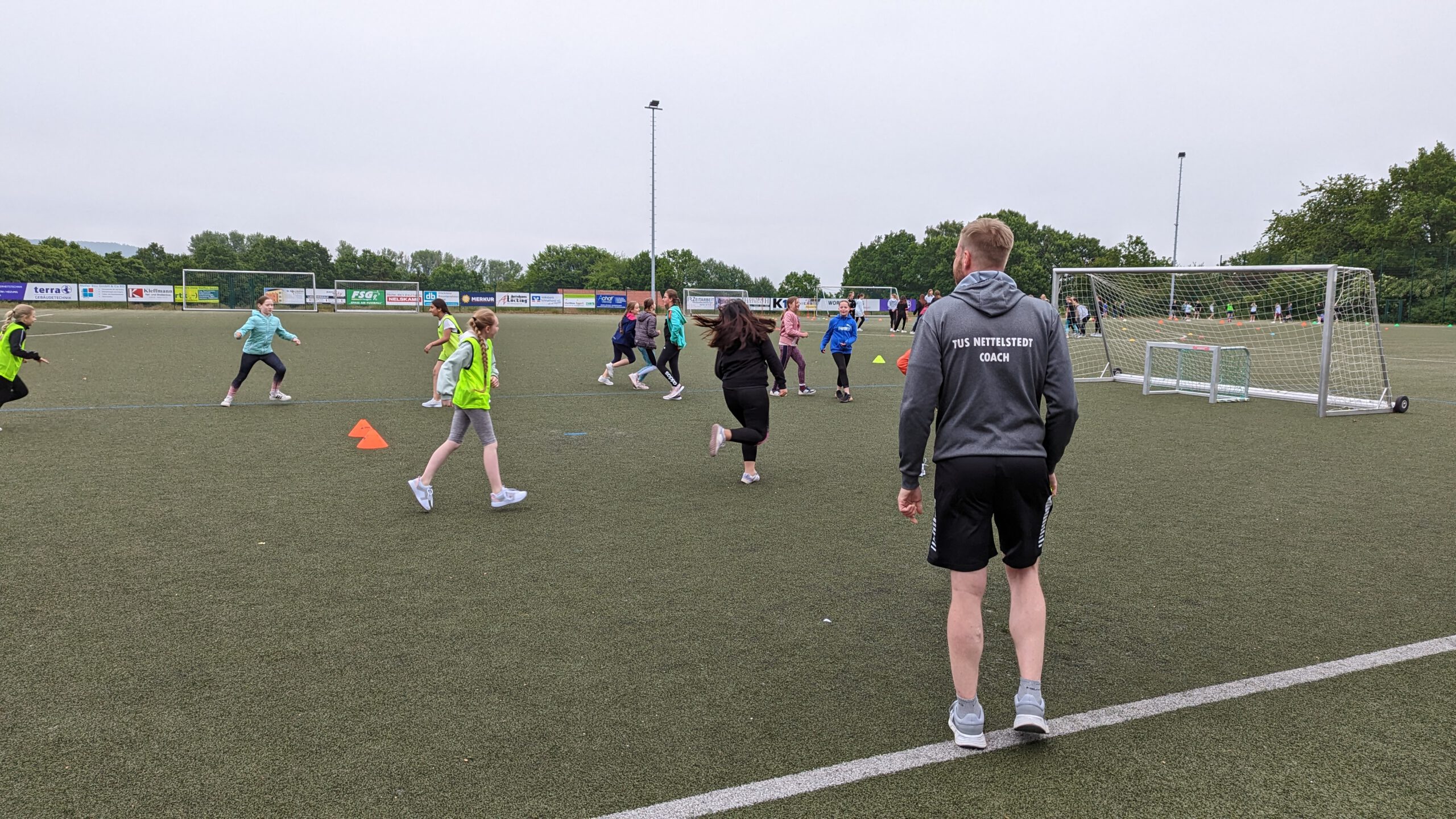 Auf dem Kunstrasenplatz der Gesamtschule Hüllhorst fand während der regulären Schulzeit zum zweiten Mal der Tag des Mädchenfußballs statt. Die Organisatorin des Events, Sportlehrerin Sonja Kadesch, hatte im Vorfeld umfangreich und detailliert geplant, um den 74 Fußballerinnen ein abwechslungsreiches Programm zu bieten. Unterstützt wurde sie von vier Vereinstrainern, die den Tag mitorganisierten und ihr Fachwissen einbrachten. Zu ihnen gehörten Katja Funk vom SV Schnathorst, die gleichzeitig Koordinatorin für Mädchenfußball im Fußballkreis Lübbecke ist, Steffen Görl vom BSC Blasheim, Jonas Granzow vom TuS Nettelstedt und Jonas Rullkötter vom SV Hüllhorst-Oberbauerschaft. Auch die drei Sporthelferinnen Mia Pühmeier aus der 9c, Katharina Nolte aus der 10a und Milena Kleine aus der 9a trugen mit ihrem Engagement dazu bei, dass der Tag zu einem unvergesslichen Erlebnis für alle wurde.