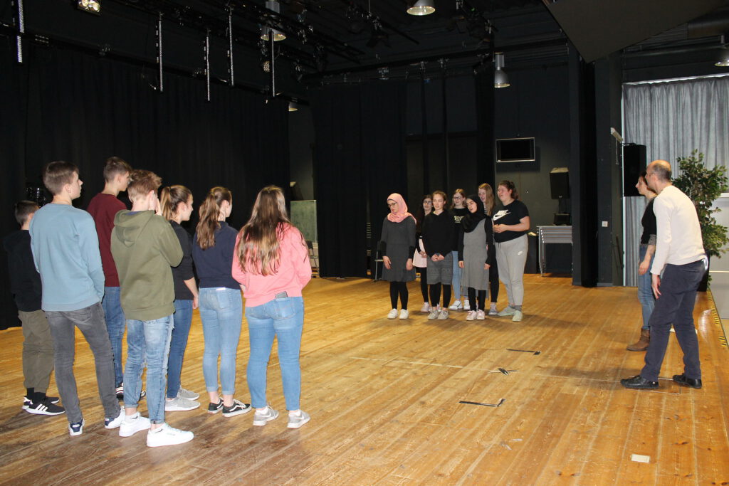 ,,Es hat unheimlich viel Spaß gemacht, Theater auf Französisch zu spielen. Schön war auch zu sehen, dass wir alle Anweisungen verstehen und umsetzen konnten“, resümieren Jannis Coors und Theo Dietrich (9c) nach dem Französisch-Workshop bei den beiden Theaterpädagogen. Und auch Alex Arefiev (9a) zeigt sich positiv überrascht: ,,Ich fand es toll, dass wir keine vorgegebenen Texte spielen mussten, sondern Aufgaben und Szenen improvisieren konnten.“