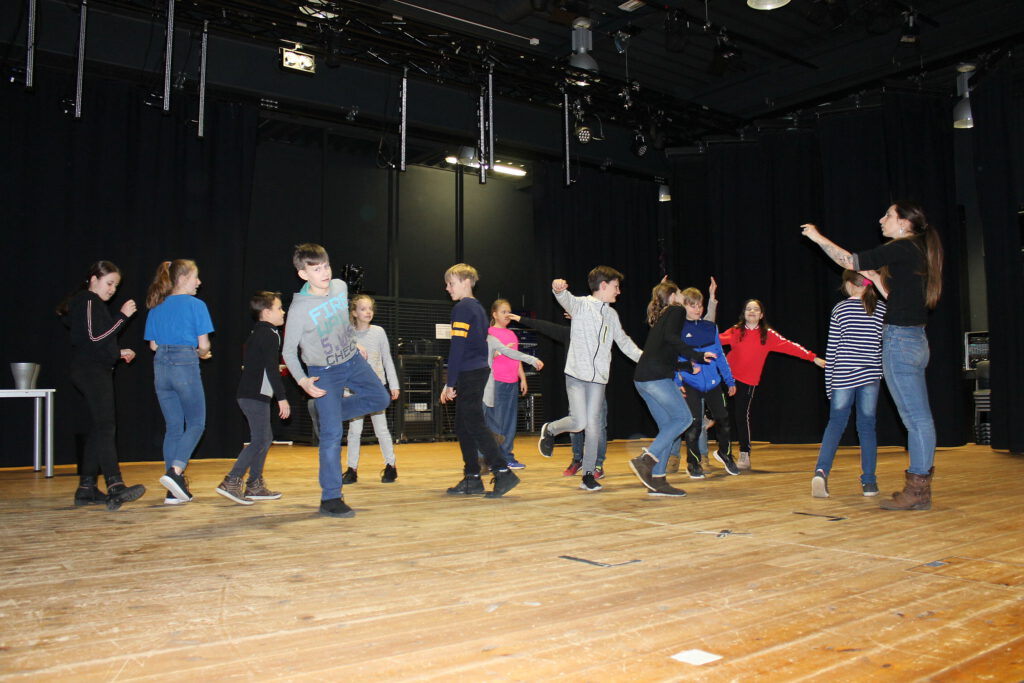 In insgesamt sieben durchgeführten Workshops, die bis zu vier Unterrichtsstunden umfassten, lernten die teilnehmenden Schülerinnen und Schüler Körper, Stimme und Sprache als Ausdrucksmittel einzusetzen sowie französische Begriffe und Sätze zu artikulieren, im Spiel zu verinnerlichen und anzuwenden. So wurden zunächst nach französischen Anweisungen der beiden Muttersprachler Kopf, Schultern, Arme und Beine gelockert, Vornamen mit Hilfe von Gesten eingeprägt und französische Grundvokabeln in sportlich-aktiven Aufwärmübungen und Standbildern erlernt und vertieft. Während die ,,Kleinen“ anschließend verschiedene Szenen entwickelten, die ,,en ville“ (in der Stadt), so die Vorgabe der beiden Theaterpädagogen, spielten, ging es für die Acht-, Neunt- und Zehntklässler auf der ,,chaise des émotions“ und in gegenseitigen Konfrontationen gefühlsbetont weiter. In einer Emotionskette stellten die Schülerinnen und Schüler beispielsweise verschiedene Gefühle in unterschiedlicher Intensität dar: Hier wuchs eine leichte Empörung zum emotionalen Ausbruch an, zurückhaltende Traurigkeit zur herzzerreißenden Verzweiflung und ein verstohlenes Lächeln zur überschwänglichen Freude. Gesprochen wurde dabei fast ausschließlich auf Französisch – ganz zum Erstaunen der neugierigen Fünftklässler, die sich für den Schnupperunterricht alle freiwillig angemeldet hatten und ihre ersten Erfahrungen mit der französischen Sprache sammeln konnten.
