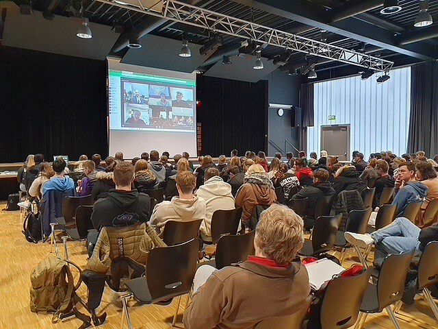 Nach einer Vorstellung der beiden Kandidaten konnten die 75 anwesenden Schülerinnen und Schüler in zwei Durchgängen jedem der beiden Kandidaten Fragen stellen, die zuvor im GL- und Sowi-Unterricht vorbereitet wurden. Neben Fragen nach der Gesundheitsversorgung im Kreis und der Kontroverse um den Neubau des Krankenhauses Lübbecke ging es zum Beispiel auch um bezahlbaren Wohnraum, die Zukunft des öffentlichen Nahverkehrs im ländlichen Raum und den Klimaschutz im Kreis. Bei welchem der drei Kandidaten die Schülerinnen und Schüler ihr Kreuz machen, bleibt ihnen selbst überlassen, aber von ihrem Wahlrecht Gebrauch zu machen und so unsere Demokratie zu stärken, sollten sie in jedem Fall.