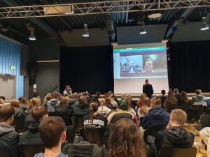Für eine Reihe unserer älteren Schülerinnen und Schüler heißt es im Rahmen der anstehenden Landratswahl das erste Mal wählen gehen zu dürfen. Um eine begründete eigene Entscheidung für oder gegen einen der drei Kandidaten treffen zu können, hatten die wahlberechtigten Schülerinnen und Schüler des zehnten Jahrgangs und der Oberstufe Gelegenheit, an einem Online-Speeddating in der Ilexhalle teilzunehmen. Organisiert und moderiert wurde die Veranstaltung von Lars Schulz vom Lifehouse Stemwede, der alle drei Kandidaten dazu eingeladen hatte. Teilgenommen haben Jörg-Michael Schrader (CDU) und Ali Dogan (SPD). Der AfD-Kandidat Thomas Röckemann hat seine Teilnahme nicht zugesagt.