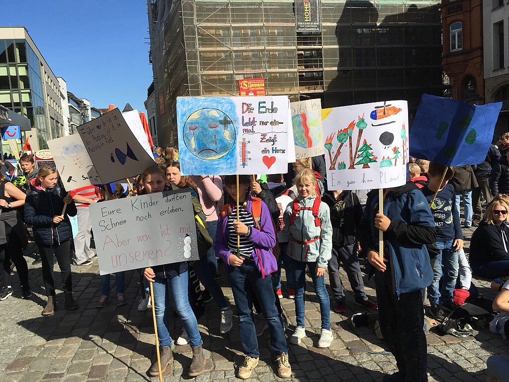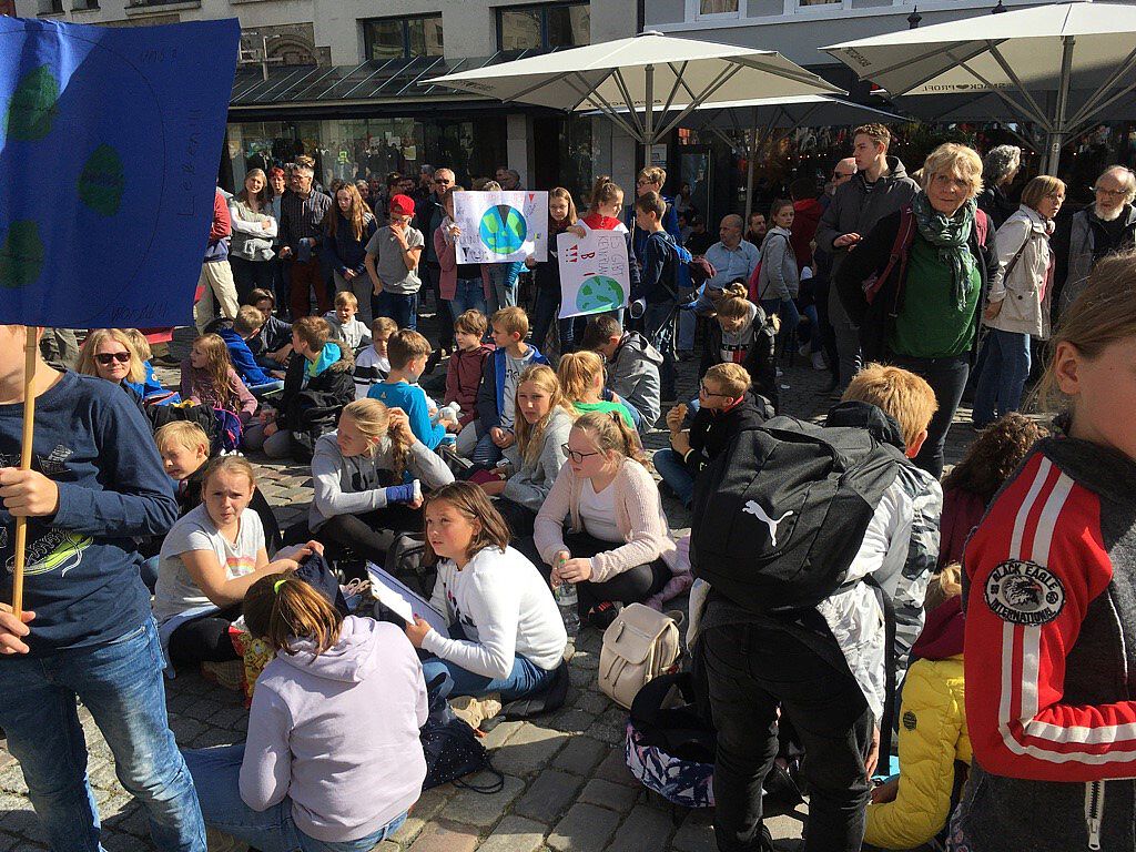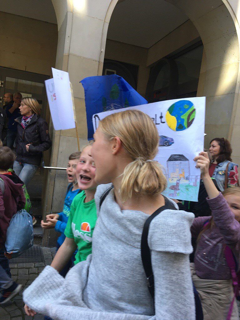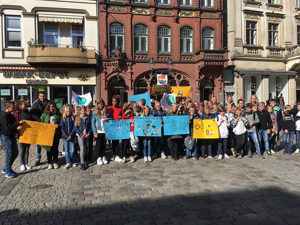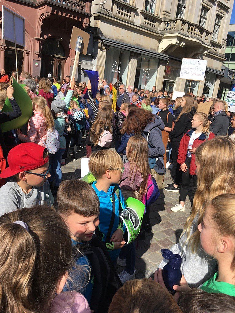 „Wir sind hier, wir sind laut, weil ihr uns die Zukunft klaut!“ – Mit diesem Motto beteiligten sich auch 150 Schülerinnen und Schüler des sechsten Jahrgangs unserer Schule am weltweiten Klimastreik, gemeinsam mit Millionen Menschen auf allen Kontinenten. Um 11.00 Uhr versammelten wir uns auf dem Marktplatz in Minden, von wo aus 1900 Menschen einen Demonstrationszug durch die Innenstadt starteten. Getreu dem gewählten Motte war es eine laute Demo, so dass das Anliegen der Teilnehmenden nicht zu überhören war. Leider mussten wir unsere Teilnahme an dieser friedlichen Aktion frühzeitig abbrechen, da auf uns die Busse nach Hüllhorst warteten.