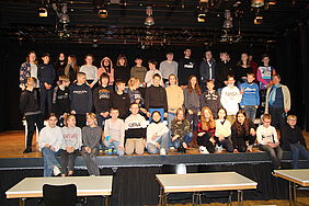 Aber der Höhepunkt sind natürlich die SchülerInnen der Jahrgänge 5 bis 7, die dem Aufruf zum Mitmachen gefolgt sind und dem Refrain und dessen Aussage eine beeindruckende Vielstimmigkeit verleihen. Das Video zum Song hat Jacob Radtke geschnitten. Hierfür konnte er auf die Ergebnisse der Auseinandersetzung mit dem Thema ,,Angriffskrieg in der Ukraine“ zurückgreifen, die im Laufe der letzten Wochen in den Lerngruppen entstanden sind. Zusätzlich konnte er das Filmmaterial der ,,Filmhütten“-Crew verwenden, die das beeindruckende ,,Peace-Zeichen“ der GesamtschülerInnen als Standbild in der Wortmann-Arena mit ihrer Drohne gefilmt haben. Besonders in der Endsequenz des Videos greift Jacob diese Vorlage auf und kreiert ein markantes visuelles Schluss-Statement.