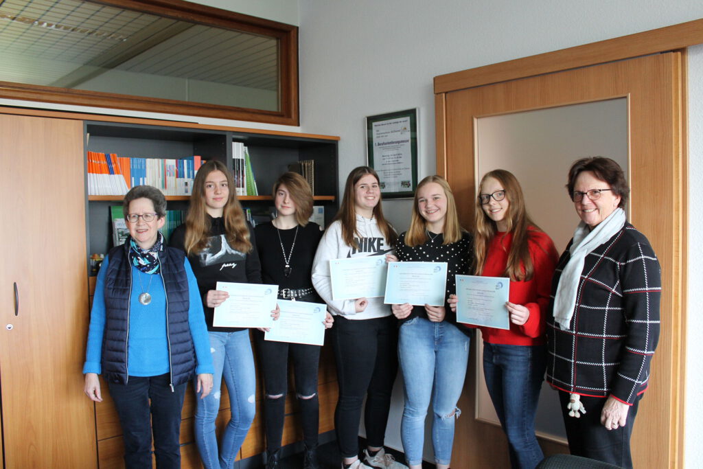 Mit Bravour haben sechs Schülerinnen und Schüler aus der Jahrgangsstufe 9 nach einer einjährigen Vorbereitungszeit die Prüfung für das internationale Sprachendiplom DELF scolaire (Diplôme d’Etudes en langue française) abgelegt. Dabei handelt es sich um ein weltweit anerkanntes und unbegrenzt gültiges Diplom, das auf mehreren Niveaus (A1 – B2) vergeben wird.