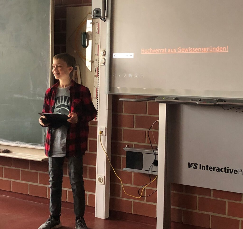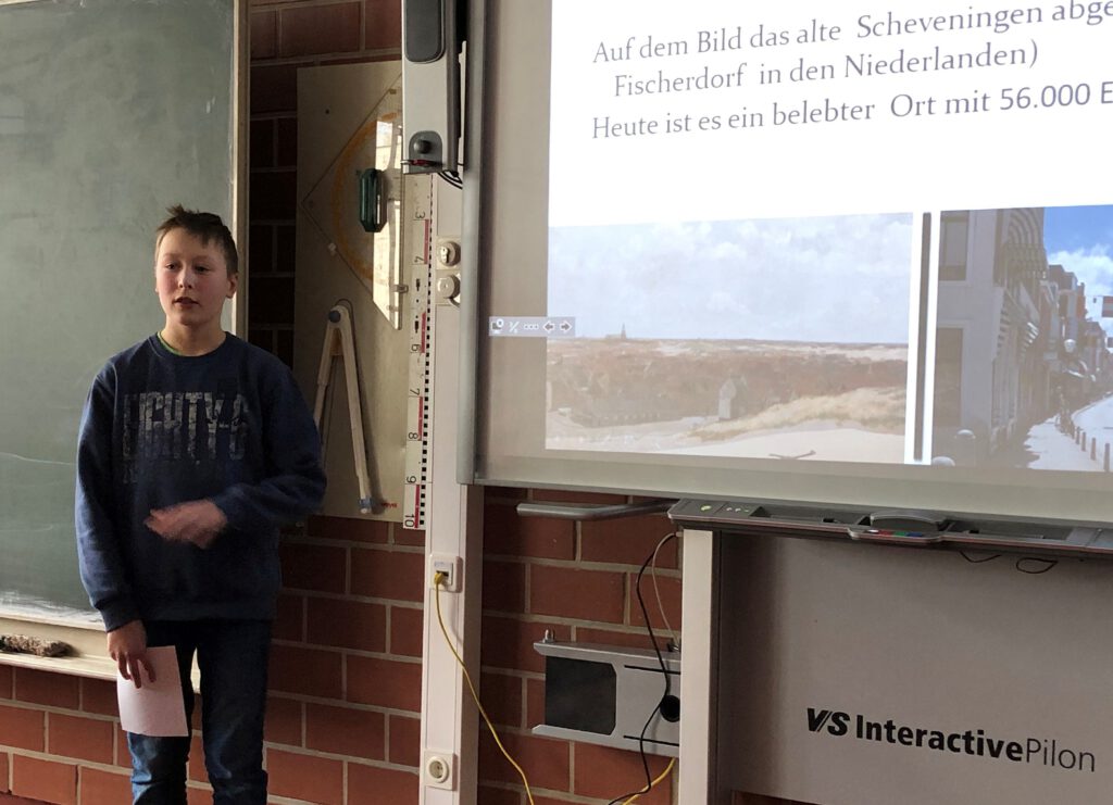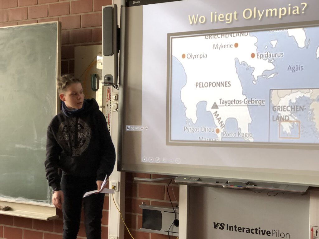 Der zweite Teil der Präsentationen erfolgte am 19.02.2020. Ole Dreyer aus der 7e Walnuss hatte sich mit den antiken olympischen Spielen im alten Griechenland beschäftigt. Geschickt stellte er die verschiedenen Sportarten vor und erklärte, warum die olympischen Spiele in der Römerzeit abgeschafft wurden. Es folgte eine spannende Präsentation von Tristan Sundermeyer aus der 7f Zeder über die Geschichte der Überschallflugzeuge. Neben den verschiedenen Flugzeugtypen ging er auch darauf ein, warum solche Überschallflugzeuge heute nicht mehr fliegen. Frederik Hinz aus der 7e Walnuss stellte in seiner Präsentation sehr lebhaft die Entstehung des überdimensional großen Panoramas Mesdag der mittelalterlichen niederländischen Stadt Scheveningen vor. Es ist heute in Den Haag zu sehen. Mit dem Hitler-Attentäter Graf Schenk von Stauffenberg und der damit verbundenen Widerstandsgruppe hatte sich Simon Reitmeier aus der 7f Zeder beschäftigt. Unterstützt durch eine tolle Präsentation erklärte Simon sehr differenziert, wie sich Stauffenberg vom überzeugten Anhänger Hitlers zu seinem Attentäter entwickelte und warum das Attentat letztendlich scheiterte. Den Abschluss der diesjährigen Präsentationsreihe bildete Mattis Müller aus der 7f Zeder, der die Auswirklungen von Handystrahlung auf den Menschen untersuchte. Sein Fazit hierbei: Wenn man einige Vorsichtsmaßnahmen einhält, ist das Risiko, das von der Handystrahlung ausgeht, eher gering.