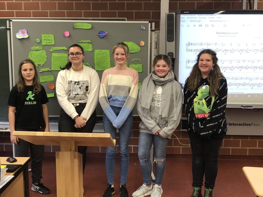 Mit diesen und weiteren Fragen haben sich insgesamt zehn Schülerinnen und Schüler des 7. Jahrgangs im Rahmen des Drehtürprojekts beschäftigt. Über drei Monate hinweg konnten sie während der Schulzeit für einige Stunden den Unterricht verlassen und selbständig an ihrem eigenen Projekt arbeiten. An zwei Nachmittagen fanden zum Abschluss des Projekts die Präsentationen der Ergebnisse vor interessierten Mitschülern, Familienangehörigen und Lehrern statt und die Ergebnisse konnten sich wirklich sehen und hören lassen.