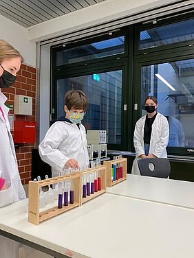 Der Einladung sind alle Grundschulen der Gemeinde Hüllhorst gefolgt, so dass an fünf Tagen, organisiert durch die Lehrkräfte Jennifer Holzmeier, Noreen Richter und Kai Hallau, 116 Schülerinnen und Schüler die verschiedenen chemischen Experimente erproben konnten. Durch die tatkräftige Unterstützung von Schülerinnen und Schülern der Gesamtschule Hüllhorst aus den Jahrgängen 10 und Q2, die die einzelnen Stationen betreut haben, wurde die umfassende Veranstaltung zu einem vollen Erfolg. Die Grundschüler waren mit großer Begeisterung bei den Versuchen mit Zitronen, Essigsäure und Rotkohlsaft dabei. Ermöglicht wurde diese Veranstaltung durch die monetäre Unterstützung der Gelsenwasser-Stiftung. So konnten Kittel, Schutzbrillen und Versuchsmaterial angeschafft werden.