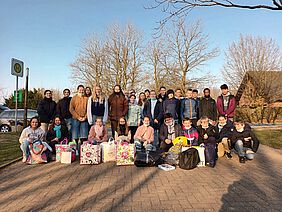 Alles begann mit einer ASK-Stunde. Frau Oelmann, eine unserer Klassenlehrerinnen, beantwortete uns viele Fragen über den Krieg in der Ukraine. Wir fanden es sehr schrecklich, weshalb in der Klasse der Wunsch, etwas zu tun, bestand und wir entschieden uns für’s Spenden. Deswegen hat Frau Oelmann mit Hilfe von unserem Schulleiter, Herrn Rümpel, Kontakt zu Herrn Tsikha, dem Integrationsbeauftragten der Gemeinde Hüllhorst, aufgenommen. Er versprach uns, in der nächsten ASK-Stunde in die Schule zu kommen, und er hielt sein Versprechen ein. Er erklärte uns, was wir spenden konnten, und eine Woche später war alles vorbereitet. Wir vereinbarten einen Tag, an dem wir zur Kleiderkammer nach Oberbauerschaft fahren konnten. Am Donnerstag, dem 24.3.2022, machten wir uns dann auf den Weg. Vorher erzählten wir Herrn Rümpel von unserer Idee, er fand sie sehr gut und sorgte dafür, dass wir kostenlos zur Kleiderkammer  fahren konnten. An der Kleiderkammer angekommen, stiegen wir mit vielen Spenden beladen aus dem Bus aus und wurden von Herrn und Frau Buhlmann, den Leitern der Kleiderkammer vom Verein „MITTeinander in Hüllhorst“, sowie von dem Bürgermeister von Hüllhorst, Herrn Kasche, empfangen. Da die Kleiderkammer nicht so groß war, mussten wir die Klasse in zwei Gruppen aufteilen. Die erste Gruppe ging als Erstes hinein und den anderen wurde währenddessen die Idee und die Arbeit der Kleiderkammer erklärt und uns wurden Fragen beantwortet. Drinnen wurden die Spenden sortiert und in Regale geräumt. Eine halbe Stunde später wurde gewechselt und die zweite Gruppe war dran mit dem Einräumen. Zum Schluss haben wir uns bedankt, dass die Kleiderkammer extra für uns am Vormittag geöffnet wurde. Dann verabschiedeten wir uns und fuhren zurück zur Schule. Bevor wir zur Kleiderkammer losgefahren sind, haben wir Schulsachen von anderen Spenden wie Kleidung, Spielzeug etc. getrennt, weil wir sie den Flüchtlingskindern aus der Ukraine, die unsere Schule besuchen, persönlich schenken wollten. Außerdem haben wir ein paar Tage zuvor persönliche Willkommensbriefe geschrieben und gesammelt und wollten ihnen auch diese überreichen. Wieder in der Schule angekommen, legten wir die Schulsachen auf eine Reihe von Tischen aus. Wir luden zehn Flüchtlingskinder zu uns in die Klasse ein und übergaben ihnen die Briefe und die Spenden. Alle haben sich sehr gefreut, wir haben ein gemeinsames Foto gemacht und uns dann verabschiedet. Es war ein toller Tag!